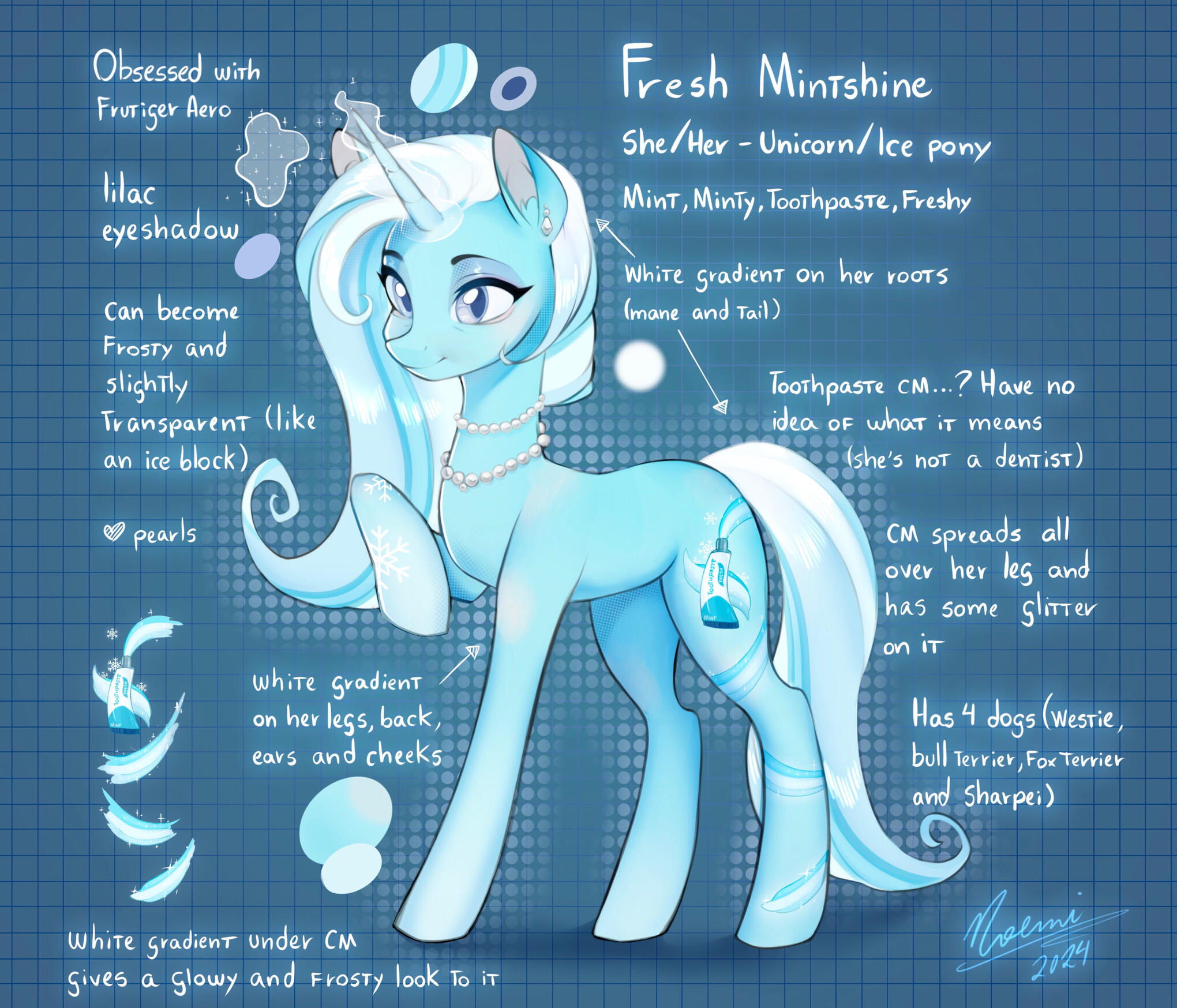 She/HerCall me Noemi or Mint. I like to draw cute ponies and concepts ^^ hope you like my work. Check on my other social media and feel free to DM me for any questions, I’m more active on Instagram. Continue swiping to see my commission pricelist and terms of service ❄️My discord- noemishine